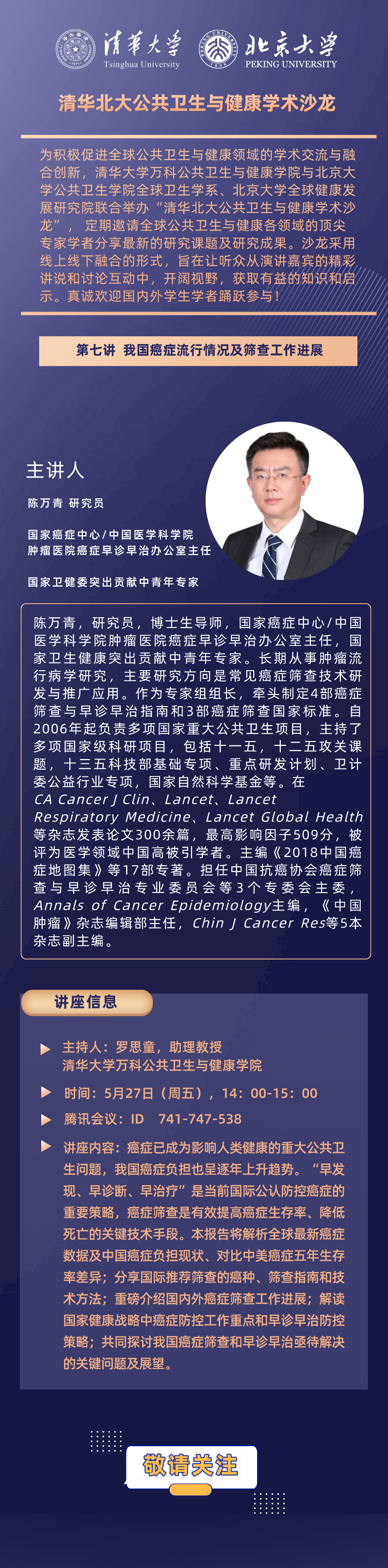 【清华北大公共卫生与健康学术沙龙】陈万青:我国癌症流行情况及筛查工作进展