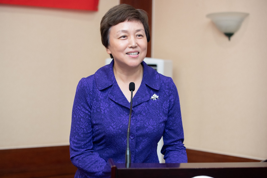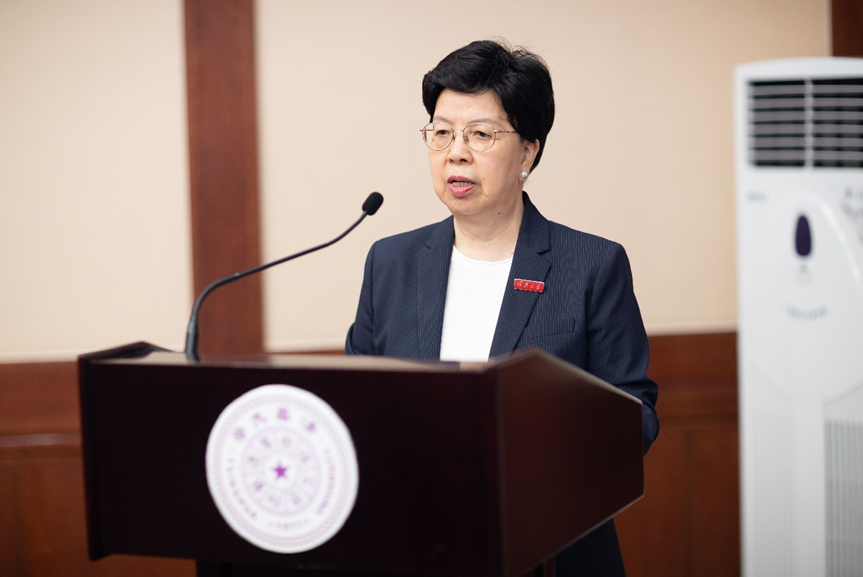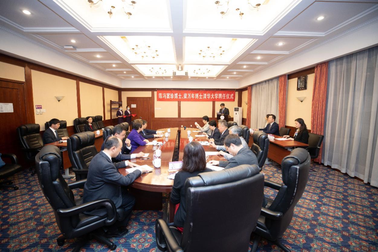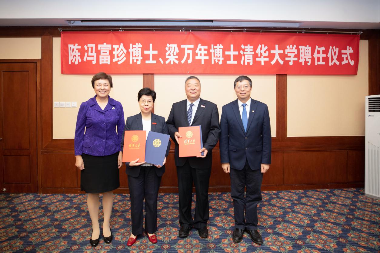 向陈冯富珍和梁万年表示热烈欢迎,并为他们颁发职务聘书。她表示,非常荣幸地欢迎陈冯富珍院长和梁万年教授正式成为清华大家庭的一员。