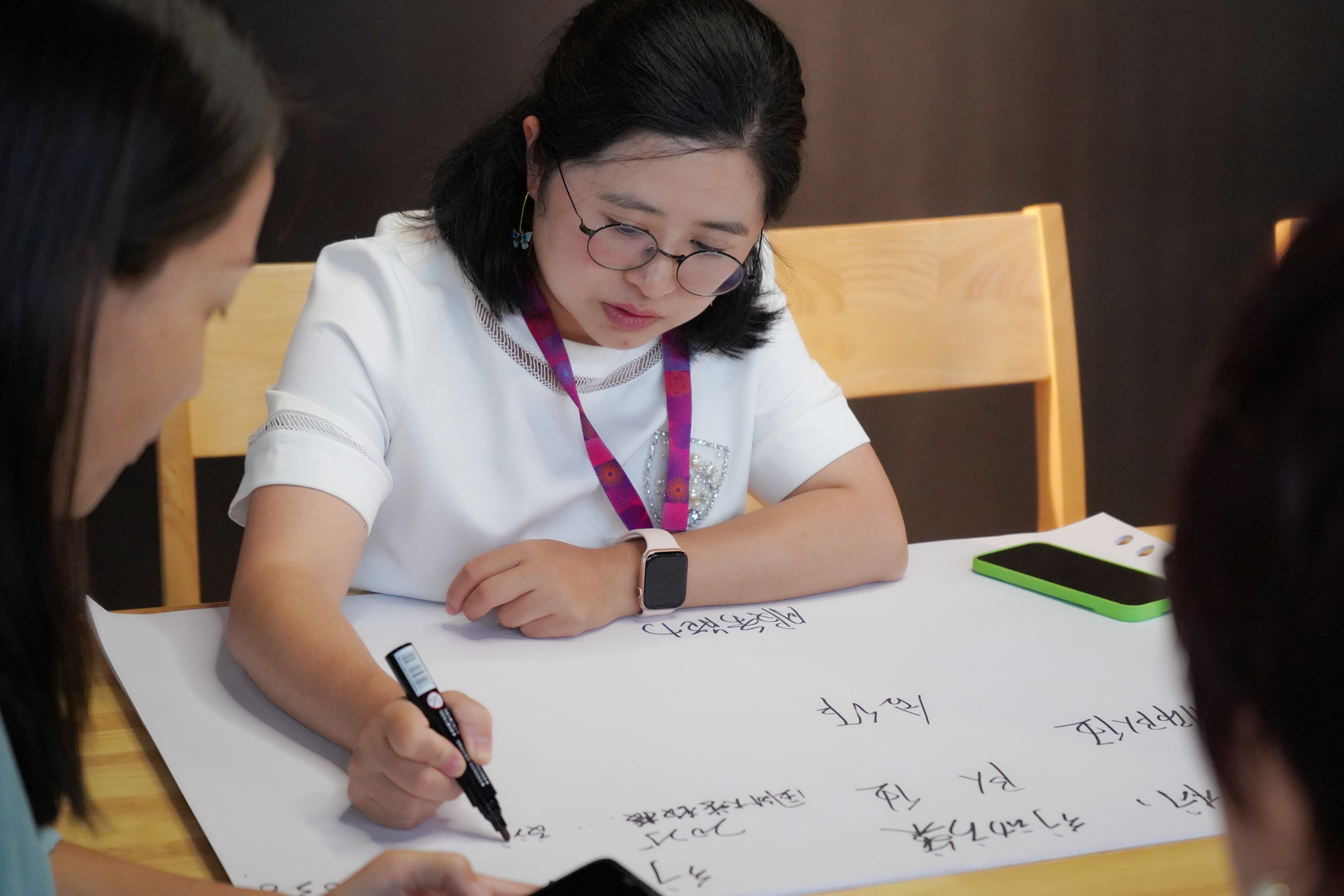 值得一提的是,为了更好地倾听与会成员最真实的声音,汇集学院最创新的智慧与思想,让学院的全球战略最大程度契合师生们的需求与期望,下半场会议基于“变革理论(Theory of Change)”,参照了国际组织制定战略的研讨方式进行了科学地设计,由主持人引导,分组进行头脑风暴及汇报,全程全员参与,最终凝聚共识,形成方案。