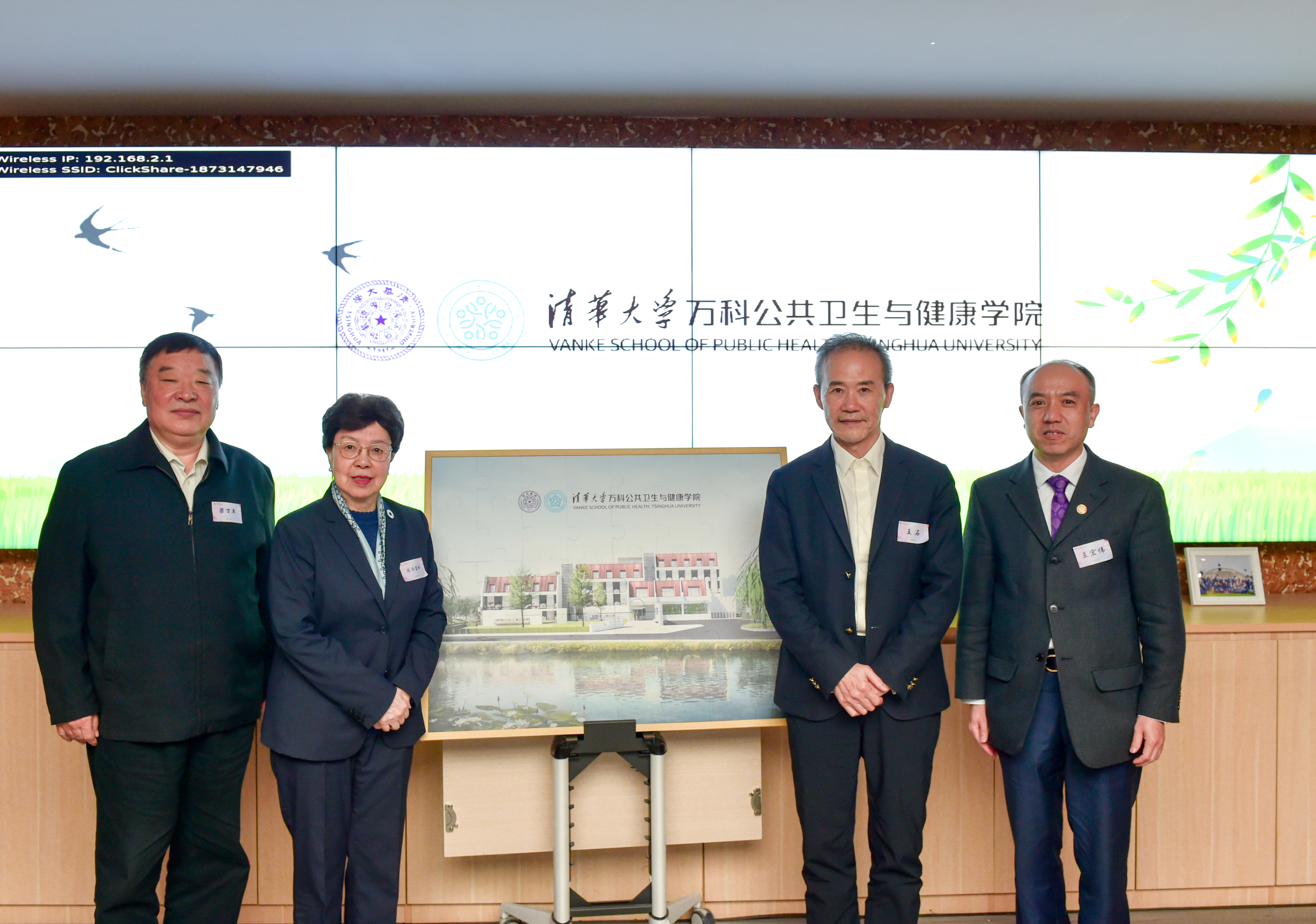 副校长王宏伟,新加坡国立大学苏瑞福公共卫生学院院长张毅颖(Teo Yik Ying)、创始院长谢继成(Chia Kee Seng)一行四人,拷贝漫画
