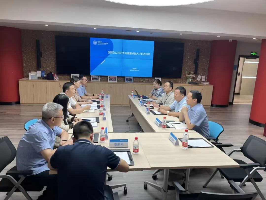 ,并就高水平公共卫生学院共建事宜举行交流座谈会。蚌埠医学院教务处副处长朱广萍、公共卫生学院院长谢虹、副院长付连国、教授贾贤杰和学院秘书李同刚,我院常务副院长梁万年、院长助理程峰、院长助理兼教学办主任黄存瑞以及教学和科研相关工作人员参加了座谈。