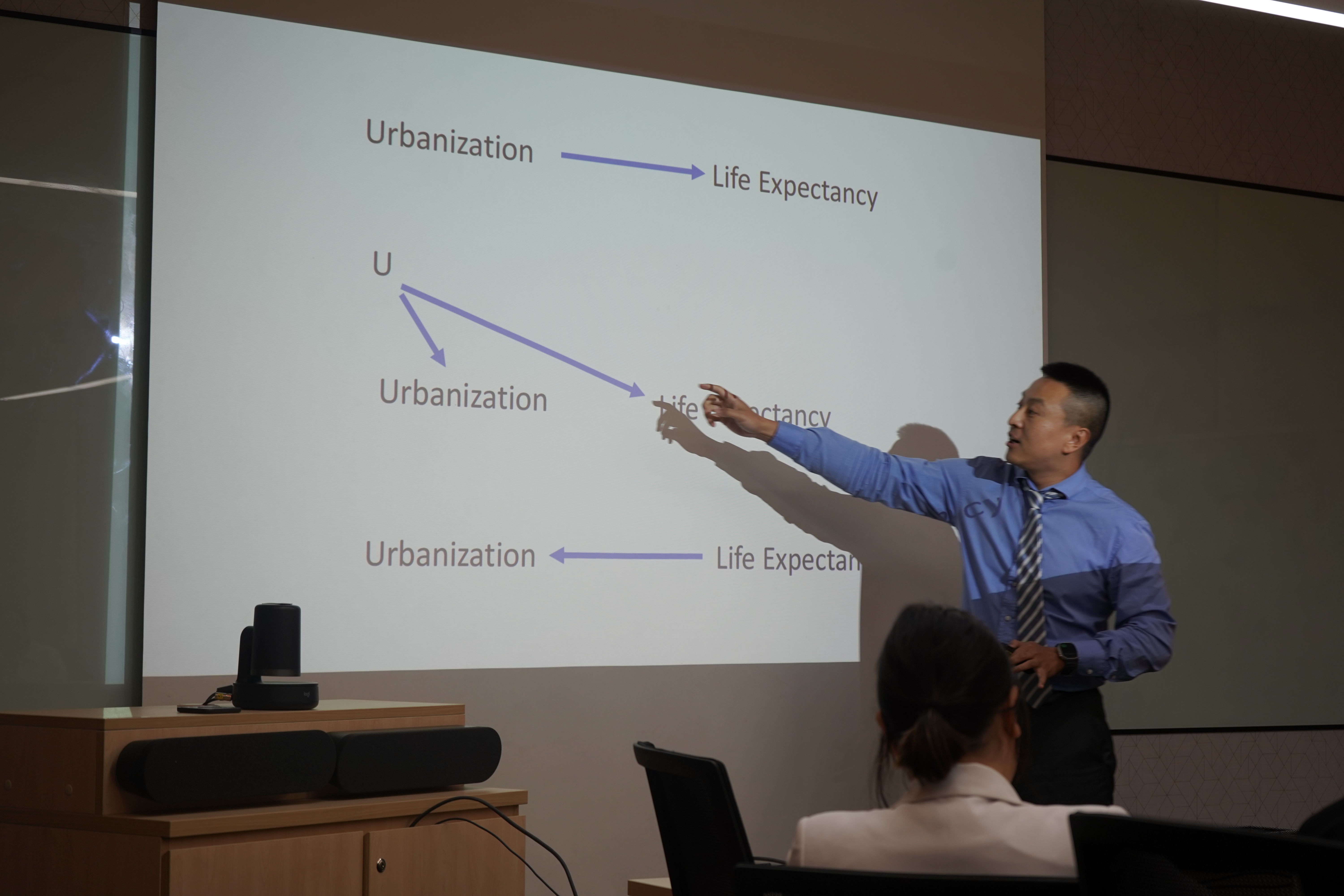 副教授纪思翰就中国城市化转型、预期寿命提高与潜在风险进行主题报告。教师与学生代表分别就健康数据管理、基层医疗结构及政策实施框架、控烟政策和疾病预防可推广经验等进行了讨论与交流。