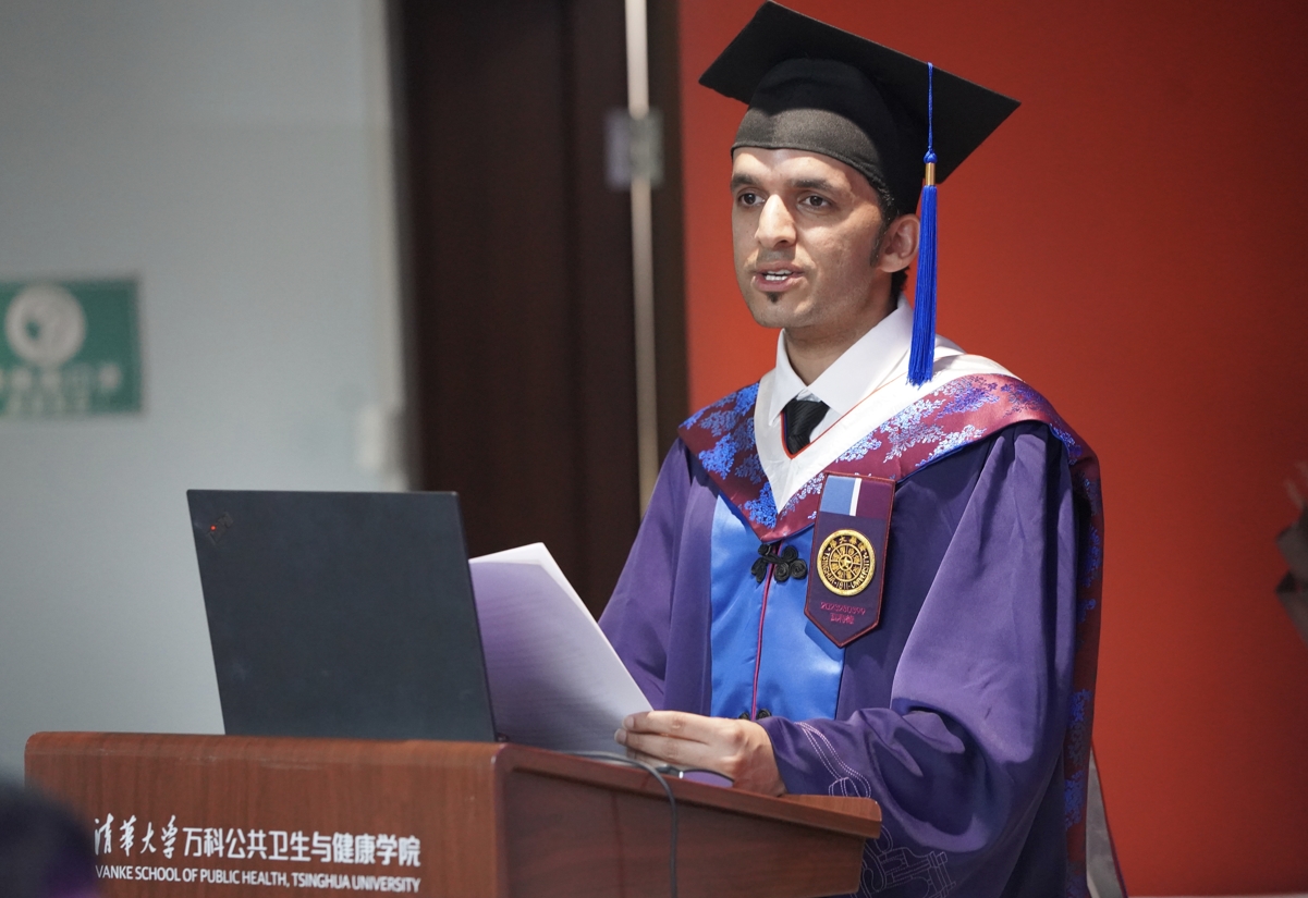 国际公共卫生硕士项目毕业生代表瓦利德·阿里·阿尔卡尼(Waleed Ali S Alqarni)向学院的教职员工以及亲朋好友在他求学过程中给与的支持和帮助表达了深深的感激之情。他表示,在清华拷贝漫画