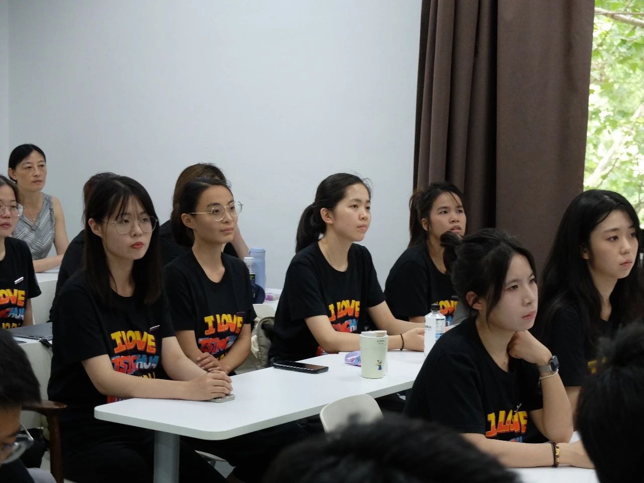 学院教师代表出席开学典礼并与学生交流(从左往右,从上到下依次为:助理教授张怡、助理教授李冠乔、教授张敏、副教授朱纪明、副教授李志徽、助理教授王思九、院长助理殷琦)