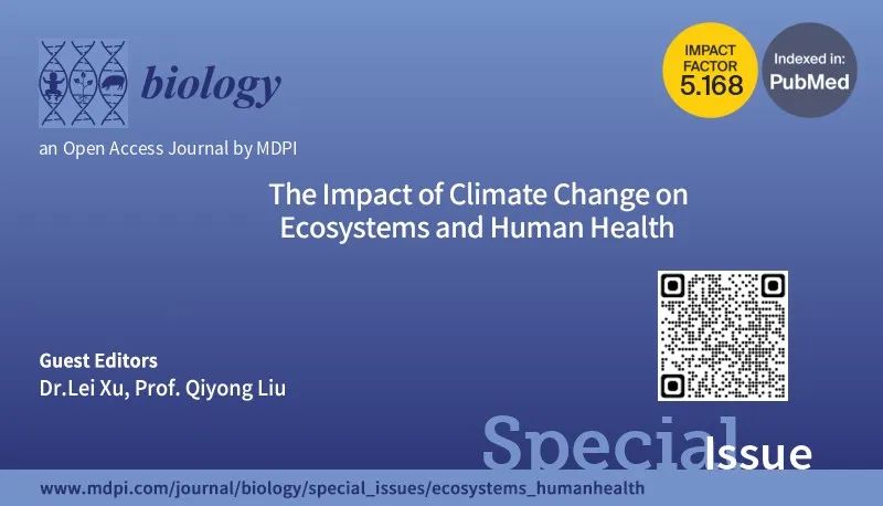 副教授许磊和中国疾控中心教授刘起勇受邀在Biology期刊共同创建的主题为《气候变化对生态系统和人类健康的影响》(The Impact of Climate Change on Ecosystems and Human Health)的特刊已于2022年11月完成。