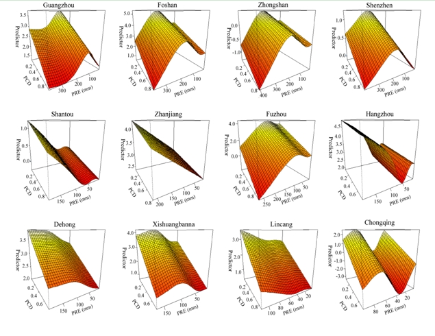 降雨分布的集中程度,可对降雨量和登革热风险的关系产生影响。在相同降雨量级上,越分散的降雨越有可能增加登革热的发生风险,而集中程度较高的降雨会降低登革热传播风险(图1)。