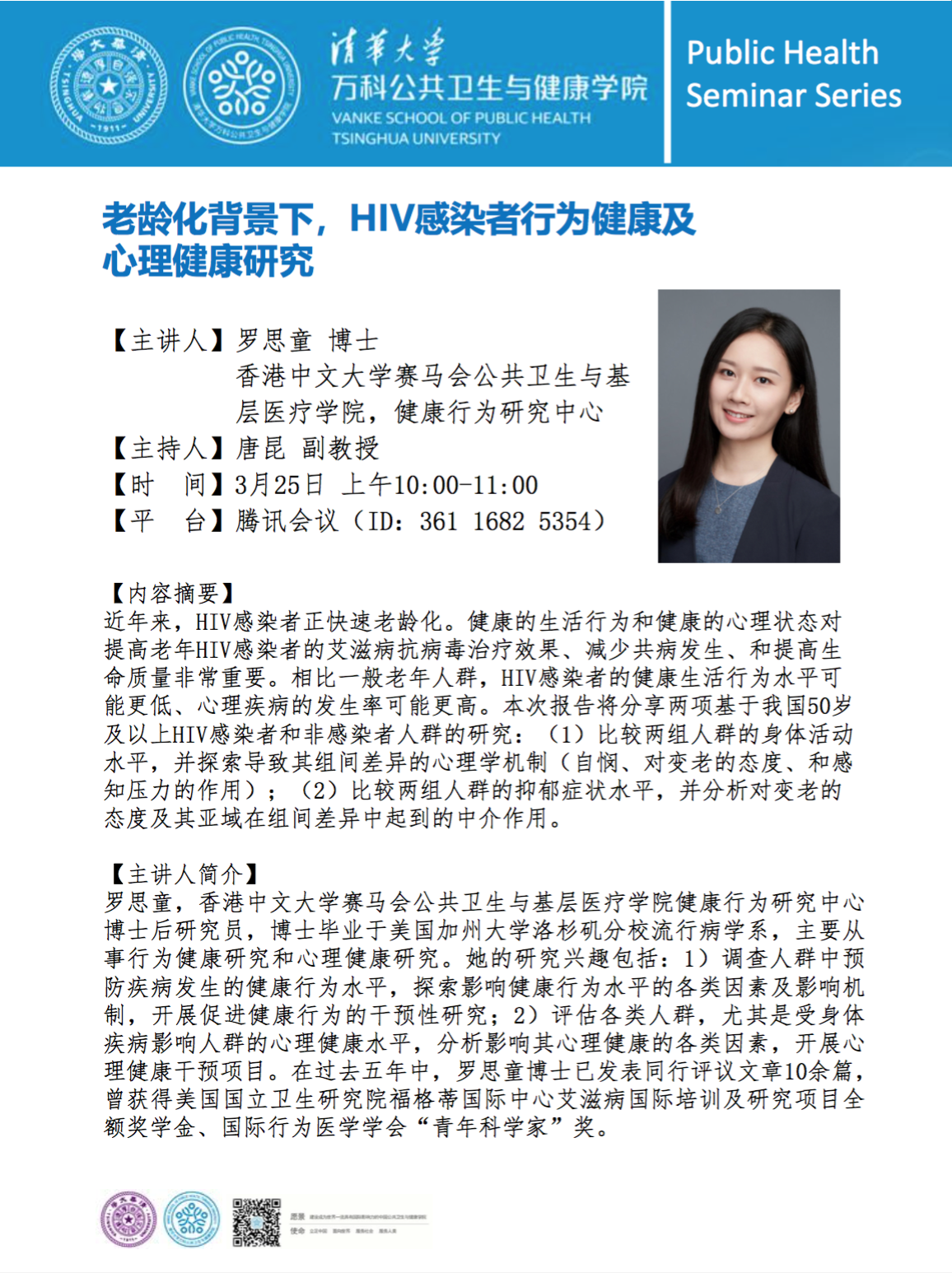 【主讲人】罗思童 博士(香港中文大学赛马会公共卫生与基层医疗学院,健康行为研究中心)