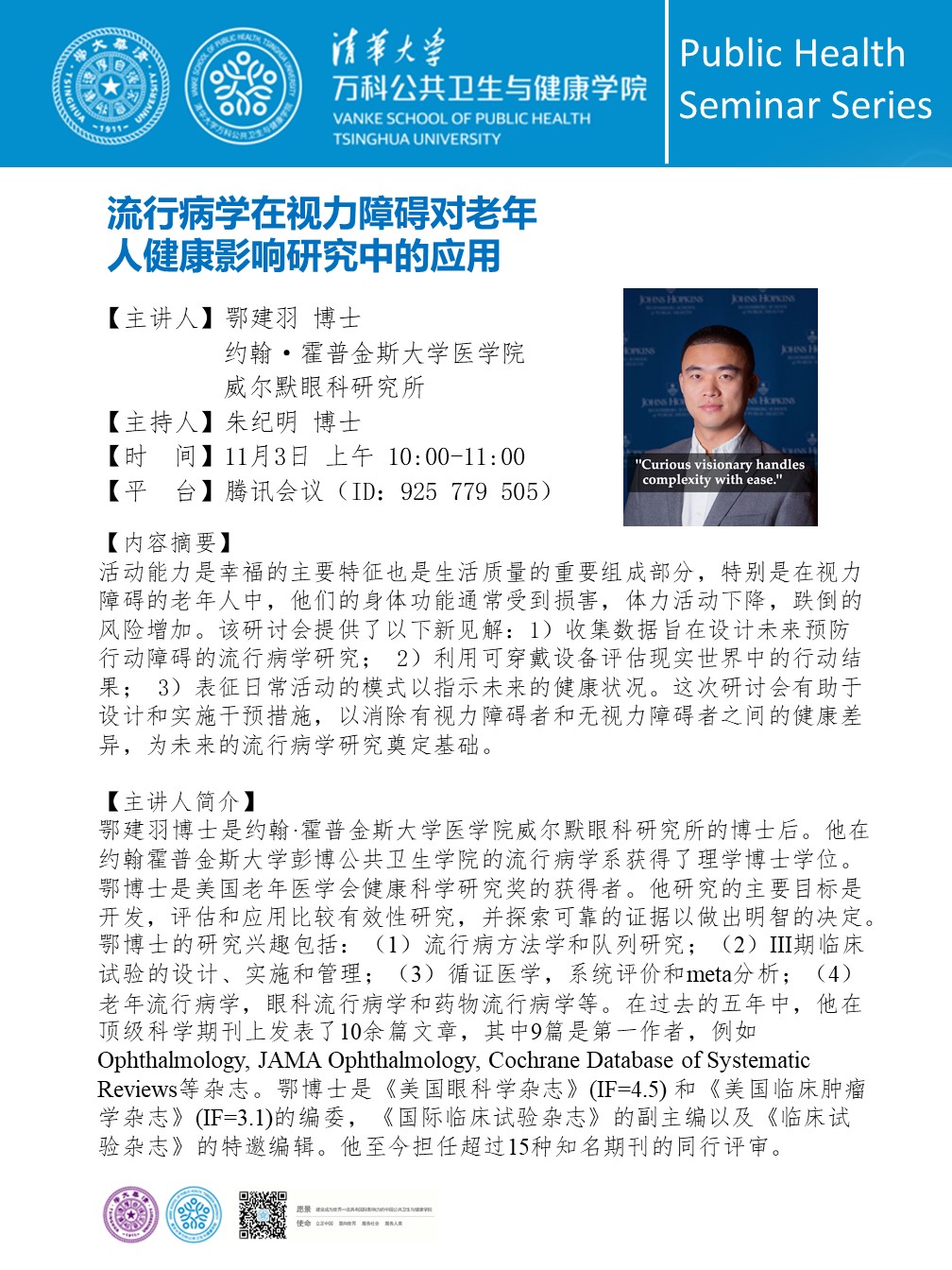 【清华公共卫生与健康系列讲座】流行病学在视力障碍对老年人健康影响研究中的应用