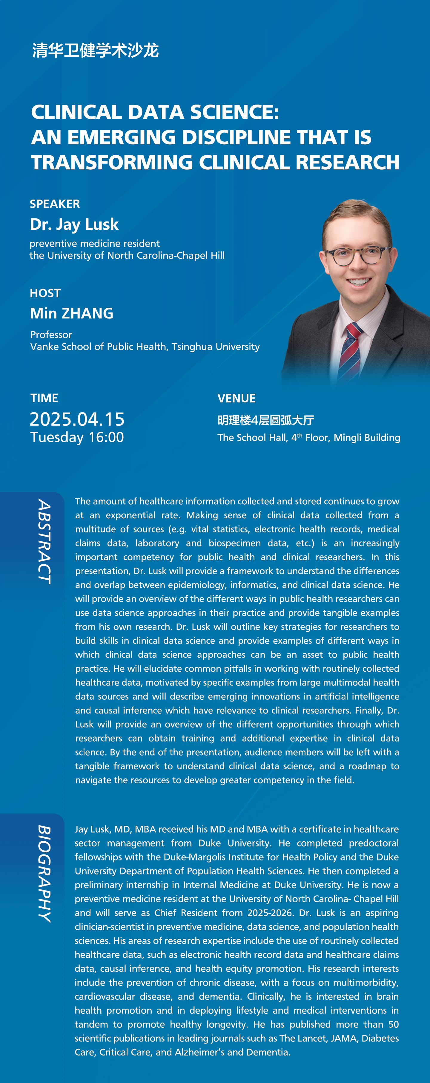 清华卫健学术沙龙 | Clinical Data Science: An Emerging Discipline That is Transforming Clinical Research